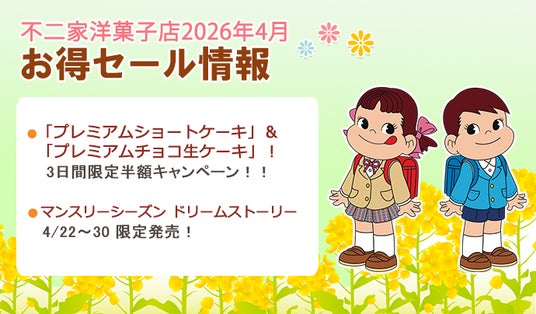 そのほか、お得な週末セールも順次実施します。さまざまな商品が期間限定でお得に楽しめますので、詳しくは不二家ウェブサイトや店頭にてご確認ください