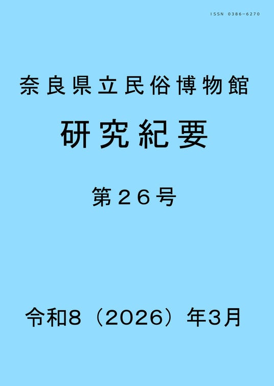 あわせて刊行する『奈良県立民俗博物館研究紀要 第26号』は、民俗資料研究、民俗学史研究、民俗行事研究、地域交通史研究に関する4本の論考を収録します。今号からは紙媒体で研究成果を手に取りたいという需要にも応えるため、一般販売します。