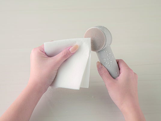 ブラシ部分は、化粧品などの汚れを拭き取りやすく乾かしやすいシリコン製なので、お手入れ簡単。また、本体は防水設計IPX5(※)なので、洗面台まわりでも使いやすく、日常使いにぴったりです。