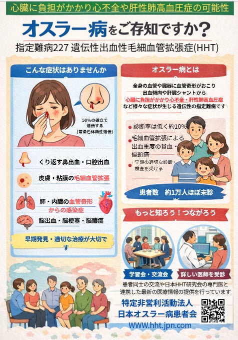 事業内容:オスラー病(HHT)に関する患者・家族支援、理解啓発、情報提供、医療連携推進、政策提言 ほか