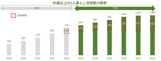 現在、日本国内における単身高齢者は約800万人にのぼり、