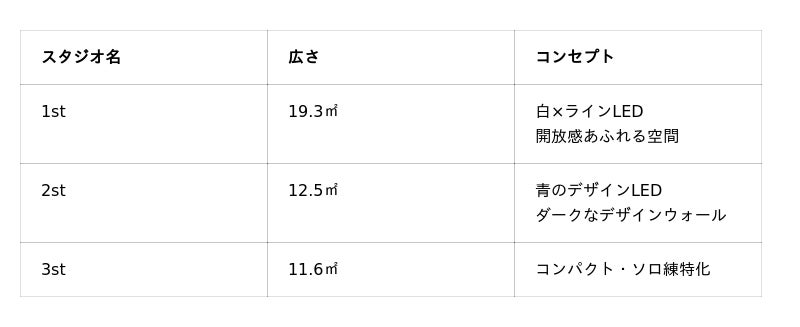 ・ 全3スタジオ!個性豊かな空間が揃う!