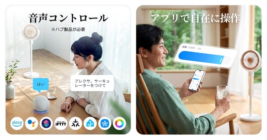 - アプリ操作:1%刻みの細かな風量調節やタイマー設定が可能。