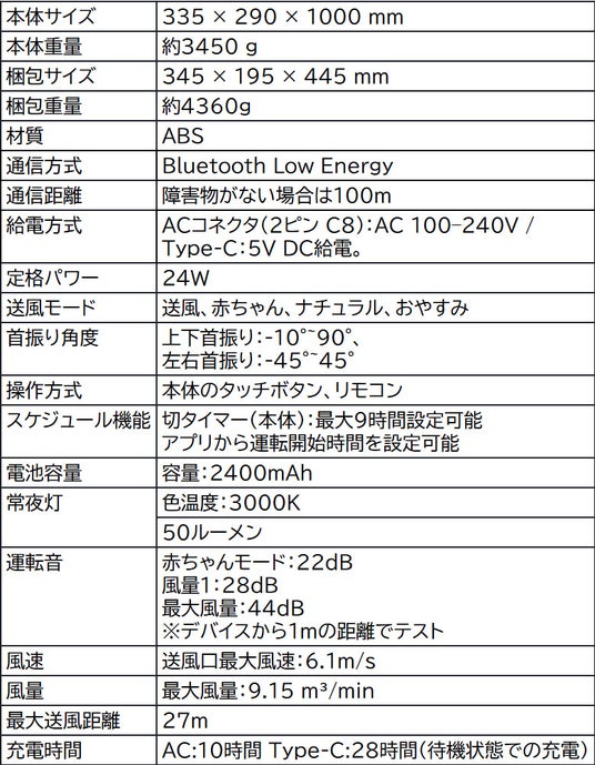 ※赤ちゃんモードで運転時(消灯・首振りオフ)の測定結果に基づく。