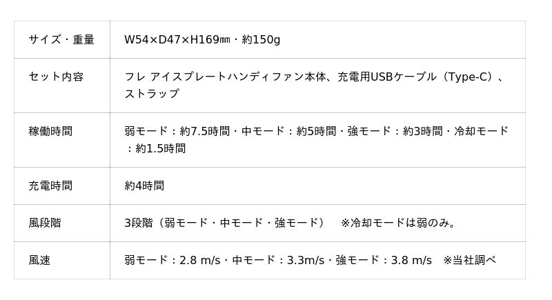 「フレ アイスプレート ハンディファン」の特徴