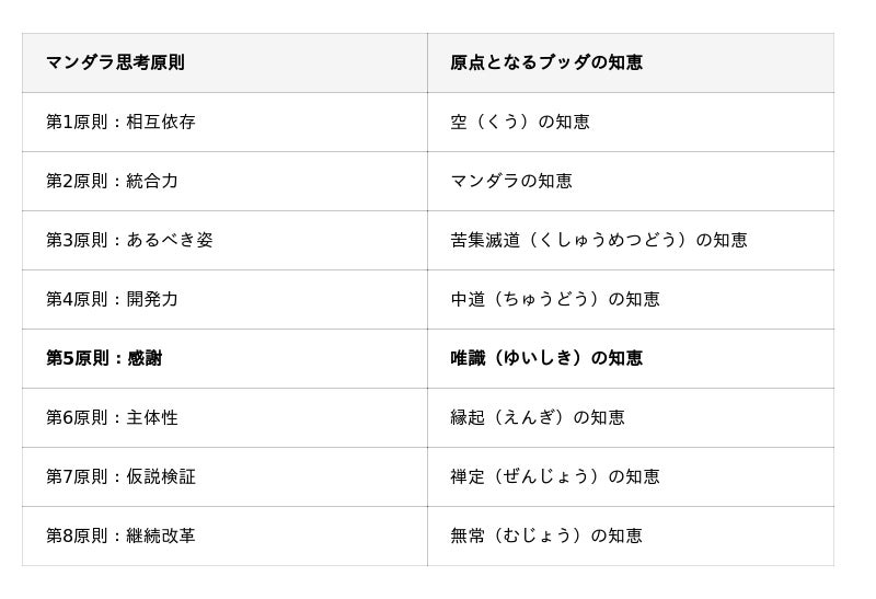 マンダラチャート(R)の考え方の背景には、「マンダラ思考」と呼ばれる思想があります。これは人生とビジネスを豊かに生きるための考え方として整理されたもので、その原点はブッダの知恵にあります。