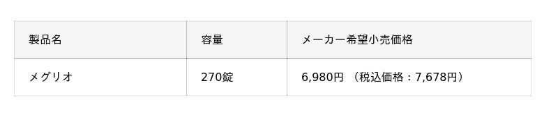 アリナミン製薬株式会社(本社:東京都千代田区、以下「当社」)は、3月31日(火)に、「メグリオ」 (第2類医薬品) を、通信販売限定の新製品として「アリナミン製薬ダイレクト(当社公式通販サイト)」にて、発売することとなりましたので、お知らせいたします。