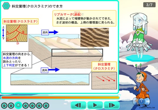 「すらら」地学基礎のレクチャー画面。アニメーションと図解を組み合わせ、地球科学の概念を直感的に捉えられます。