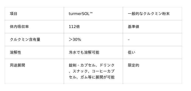 turmerSOL(TM) ~吸収率112倍を実現した革新的ターメリック素材~