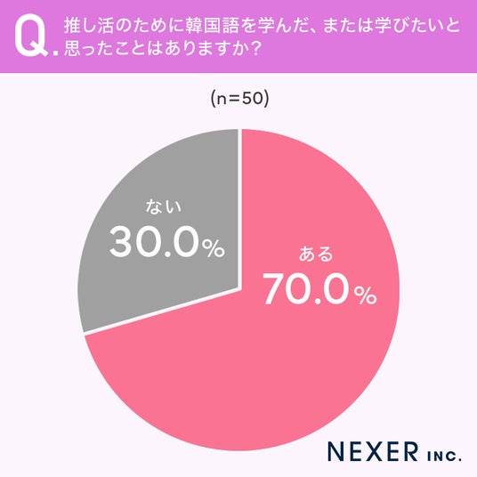 ■70.0%が「推し活のために韓国語を学んだ、または学びたいと思ったことがある」と回答