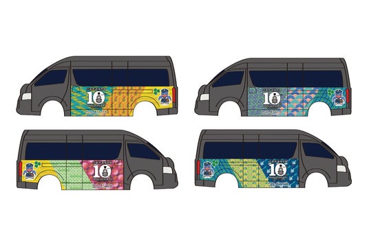 両者での産博連携そして地域連携を深めていく中で、同館は今年、開業10周年という節目を迎えられました。10周年事業について「一緒にお祝いするにあたり、なにができるか」を同館と協議する過程で「これまで築いてきた関係を大切にし、今後もよりよいパートナーシップを育んでいきたい」という思いが共有されました。その結論として、彌榮自動車が近年取り組んできたコラボレーション事業のなかでも大規模となる4両の車両ラッピングを施し「開業10周年号」として運行することとなりました。