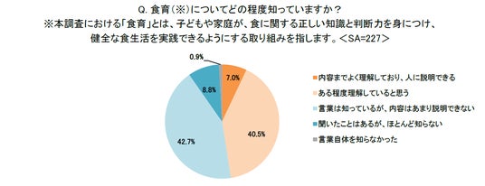 1.9割以上の親が「食育」は必要だと回答するも、内容まで説明できる親は半数以下にとどまる結果に!食育の重要性は浸透している一方で、具体的な内容理解まで浸透はしていない状況がうかがえた。