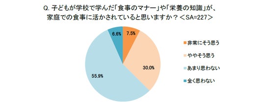 「食事のマナー」や「栄養の知識」が家庭での食事に活かされていないと感じる親が多い結果に。