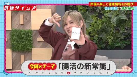 この日は、「腸活の新常識」をテーマに収録を実施。原稿読み対決やあいうえお作文、クイズ企画などに挑戦しながら、腸と胃から始める新しい健康習慣について、楽しく、そしてわかりやすく解説していただきました。収録を終え、岡本信彦さんは、「バラエティ番組での共演はあるので(仲村宗悟さんと)、お互いのことを知っているからとても心強かったです。」と振り返りしました。テンポの速い掛け合いの中でも互いにフォローし合いながら進行できたことに安心感があったご様子でした。