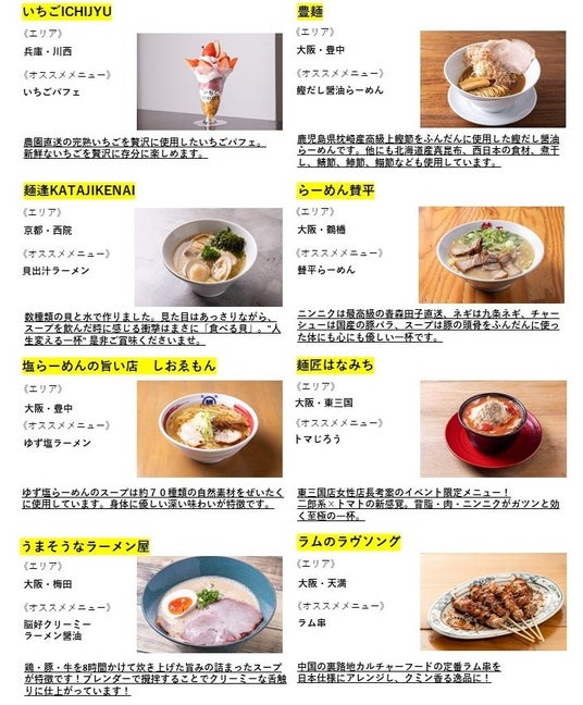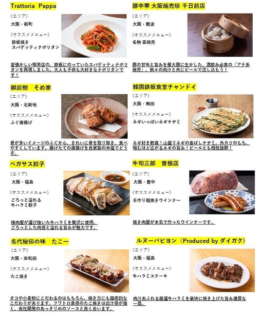 関西人が“ホンマにうまい!”と唸るツウな飲食店50店舗以上が集結!出店店舗の第1弾を発表!