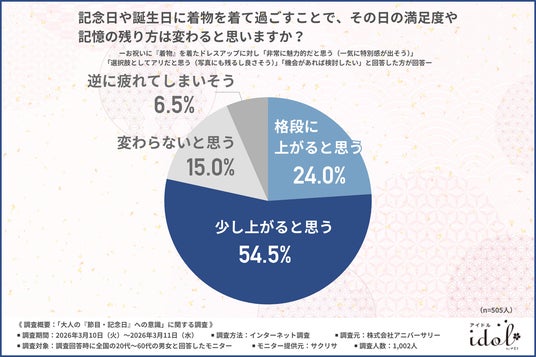 多くの方が、着物を着ることで記念日の満足度や記憶の残り方が向上すると思うようです。