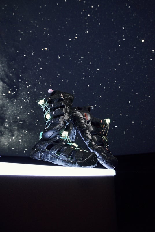 2026年春夏は、メンズ・ウィメンズ・キッズで展開する「BLACK STARDUST COLLECTION」をラインナップ。ブラックを基調としたミニマルなルックスに、トグルやアローヘッドには蓄光仕様を採用することで、昼夜で異なる表情を演出し、まるで都市に浮かぶ星屑のように足元を彩ります。
