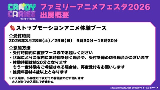 3月28日(土)、29日(日)に南展示棟1ホールで開催される「ファミリーアニメフェスタ2026」に4月より放送予定のTVアニメ『キャンディーカリエス』が出展します。