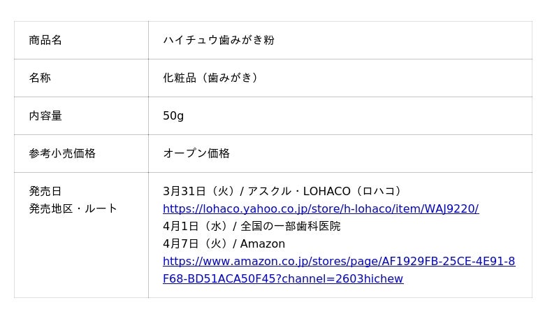 森永製菓株式会社(東京都港区芝浦、代表取締役社長COO・森 信也)は、「ハイチュウ<グレープ>」の風味を再現した「ハイチュウ歯みがき粉」を3月31日(火)より順次、一部ECサイト・歯科医院にて発売いたします。