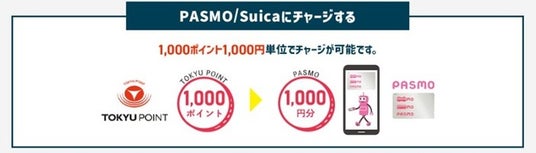 貯まったTOKYU POINTを1ポイント=1円として、PASMOもしくはSuicaに券売機などでチャージしてご利用いた