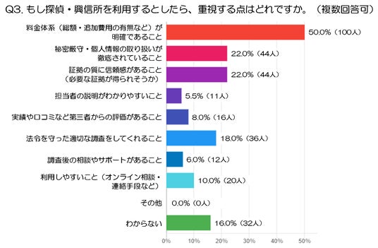 調査3 :もし探偵・興信所を利用するとしたら、重視する点は?