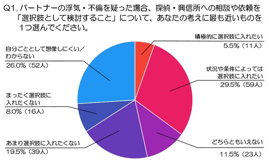 Q1.パートナーの浮気・不倫を疑った場合、探偵・興信所への相談や依頼を「選択肢として検討すること」について、あなたの考えに最も近いものを1つ選んでください。