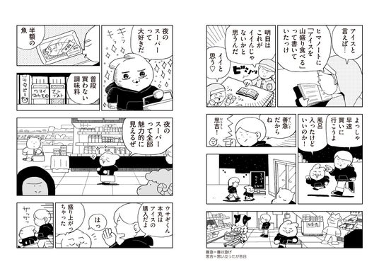 そんなウサギくんが、暇な時にやりたいことを書き溜めたのが「ヒマノート」。「ヒマノート」にあるヒマつぶしから「ボク」くんがその日の行動を選んであげることで、二人の不思議な日常が動き出します。