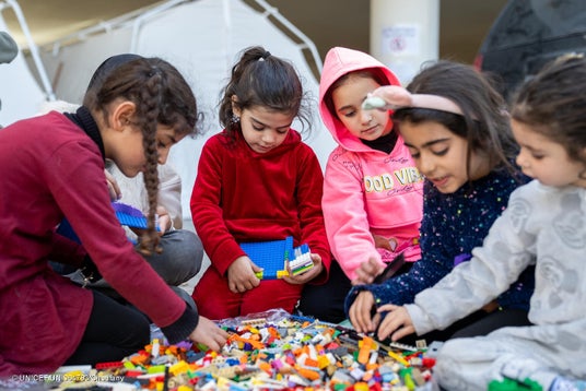 ベイルートの避難所となっている学校で、子どもたちがわずかな時間でも日常を取り戻せるよう、ユニセフはおもちゃを提供している(レバノン、2026年3月17日撮影)(C) UNICEF/UNI964783/Choufany