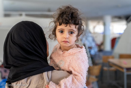 ベイルートの学校で避難生活を送る2歳の女の子(レバノン、2026年3月17日撮影) (C) UNICEF/UNI964788/Choufany