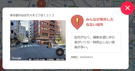 こくみん共済 coop が金沢大学と共同で開発しました。警察庁が公表する交通事故統計情報のオープンデータ合計34,072件の事故情報を反映しています(2025年7月現在)。過去に交通事故が起こった場所が分かりやすく表示されるため、通学や通勤、お出かけ前など、特に注意すべき場所を調べることが可能なツールです。身近にある危ない場所や交通安全に関する取り組みが行われている場所を、誰でも投稿することも可能で、利用者全体で情報を共有することができます。