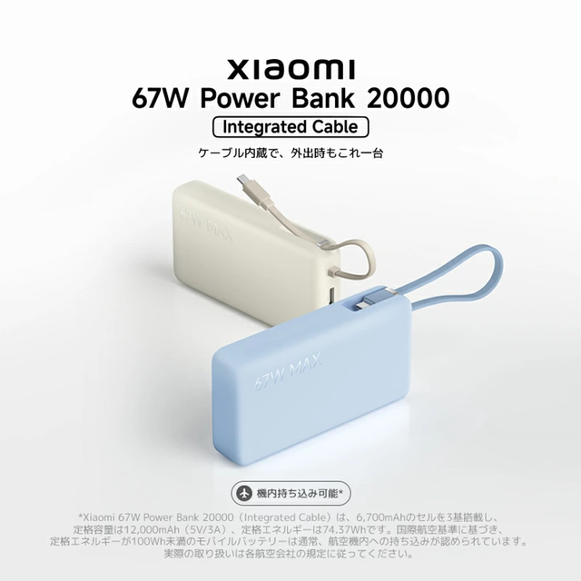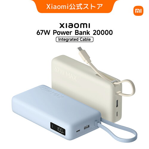 本日2026年3月24日は、USB-Cケーブル内蔵・大容量で使い勝手抜群なXiaomi(シャオミ)の新作モバイルバッテリー「67w Power Bank 20000 Integrated Cable」が、発売早々でお得に登場しています。