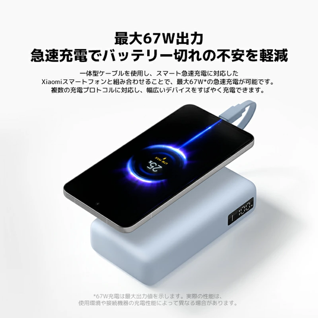 Xiaomiの新作「67w Power Bank 20000 Integrated Cable」が10%オフ。最大67W出力で充電できるモバイルバッテリーがお得
