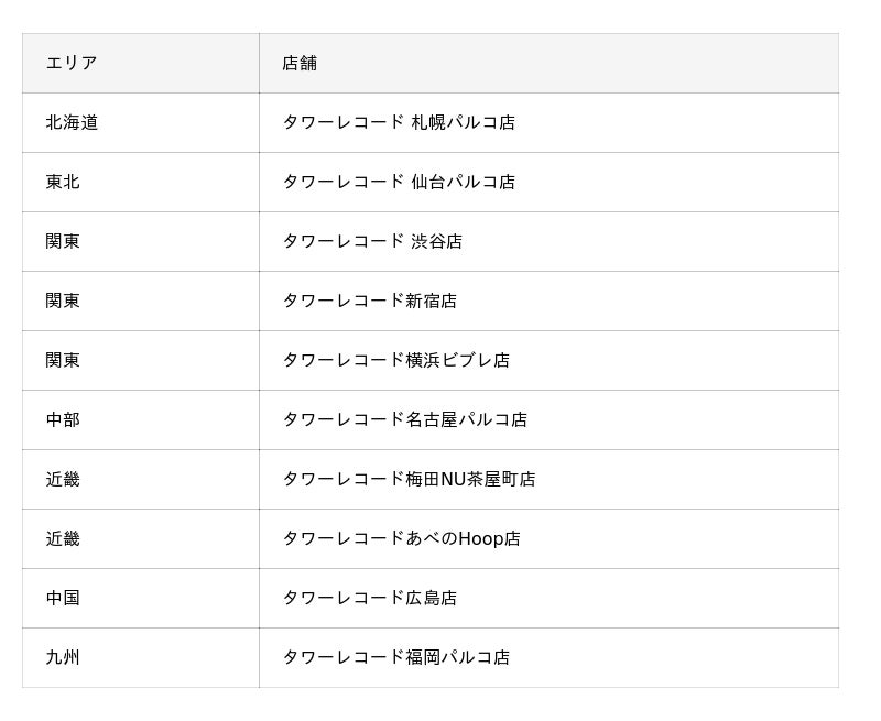 ※TOWER VINYL梅田店、TOWER RECORDS mini もりのみやキューズモール店、TOWER RECORDS mini 舞浜イクスピアリ店での販売はございません。