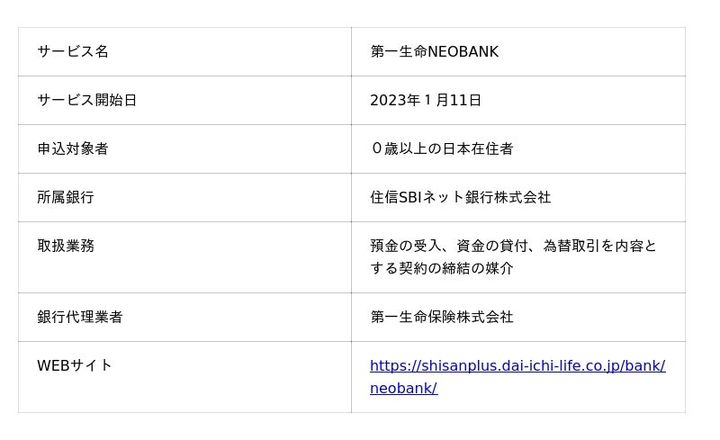 | 第一生命NEOBANK 概要