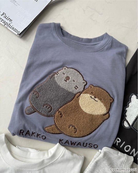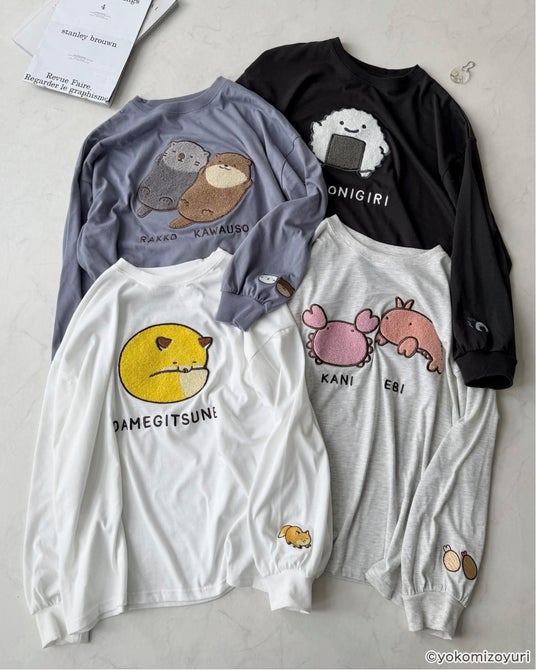 よこみぞゆりさんの描く 『 なんでもいきもの 』のキャラクターたちがふわふわとデザインされたロンTがAS KNOW AS plusから登場♪アクリルキーホルダーもセット。