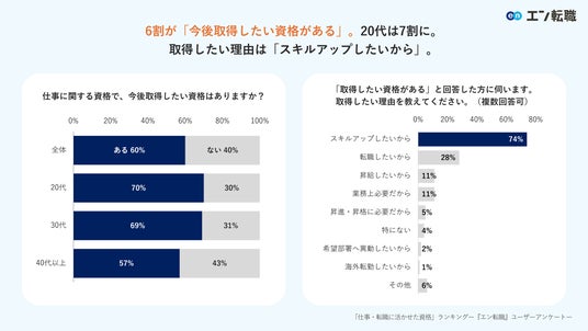 6割が「今後取得したい資格がある」。20代は7割に。