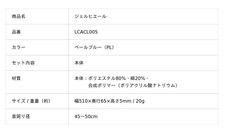 ジェルでひんやりが長時間続く付け襟タイプのネッククーラー