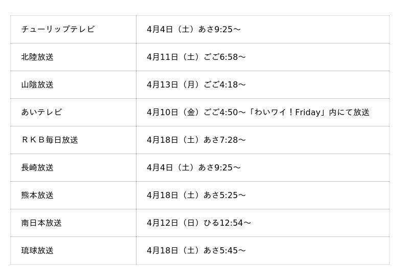4月4日(土)あさ9:25からTBSにて放送開始。ほかTBS系各局にて順次放送します。