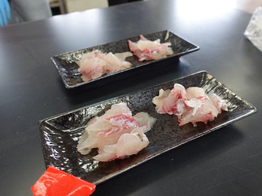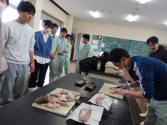 試食会では、茶鯛は通常のマダイと比べて身に弾力を感じるとの声もあがりました。餌やりの様子も見学し、学生・生徒が一つひとつの工程を丁寧に積み重ねていることが伝わりました。