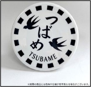 〇つばめロゴメモリアル缶バッジ(15cm) 売価:990円(税込)九州新幹線のシンボル「つばめ」ロゴを大胆にあしらった、直径約15cmの特大缶バッジです。