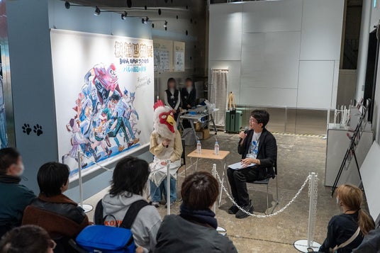 板垣巴留先生の大ファンでもあるMC・望月英さんの呼びかけにより『BEASTARS』登場キャラクター「レゴム」のマスクをかぶった板垣巴留先生が登場。会場からは大きな拍手が起こり、和やかな雰囲気の中でミニトークショーがスタート。