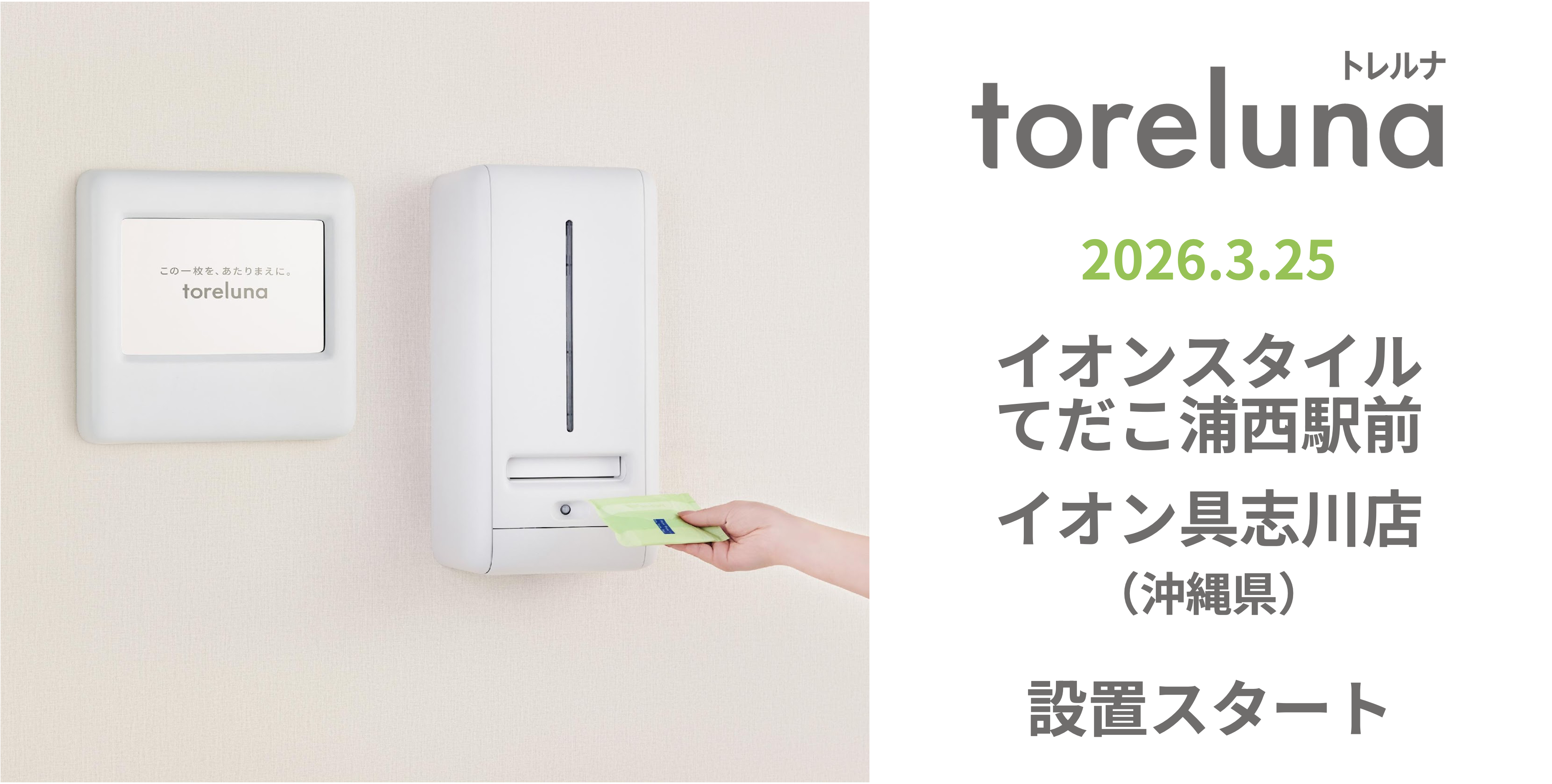 トイレの個室で生理用ナプキンが無料で受け取れる「トレルナ」イオン琉球 5店舗へ設置 -