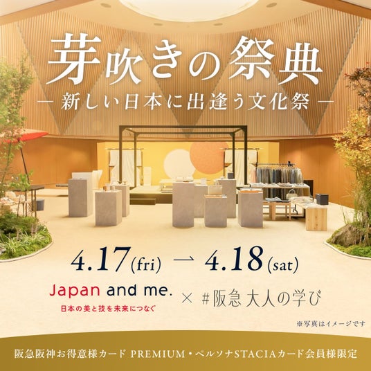 阪急うめだ本店では、4月1日(水)~28日(火)の期間、受け継がれてきた日本の伝統や技、その魅力を再発見する「Japan and me.」を開催します。今回は “芽吹き” をテーマに、受け継がれてきた技を生かし、現代の感性で新しい風を起こす職人や若きクリエイターたちにフォーカス。1階 コンコースウィンドーをはじめ、衣食住の3つのカテゴリーで新しい日本の感性を発信。また岩手の郷土芸能である鹿子踊の公演や、様々なワークショップなどの体験も開催し、“新しい日本に出逢う”体験をお届けします。