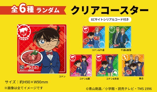 - 焼肉から〆、デザートまで!焼肉時間がさらに楽しくなる多様なメニュー江戸川コナンや毛利蘭など、劇場版「名探偵コナン ハイウェイの堕天使」に登場するキャラクターの「コラボ単品メニュー」が登場。各メニューには「オリジナルピック」が付き、1品ご注文につき「オリジナルグッズ(全6種)」をランダムで1つお渡しいたします。