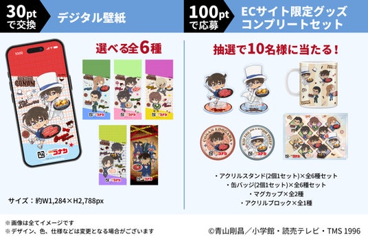 - 30ptで「デジタル壁紙」と交換!100ptで「ECサイト限定グッズ コンプリートセット」が抽選で当たる!キャンペーン期間中、「牛角公式アプリ」をレジで提示すると、お会計金額の税込2%が「名探偵コナンポイント」として貯まります。「名探偵コナンポイント」は、「デジタル壁紙」との交換や「ECサイト限定グッズ コンプリートセット」への応募に使用できます。
