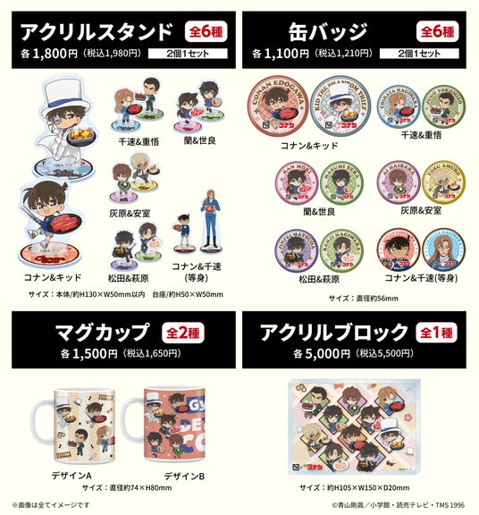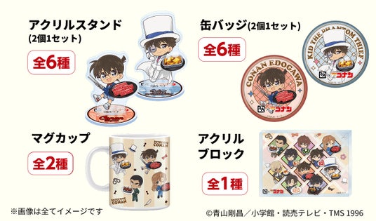 アクリルスタンド(全6セット)/缶バッジ(全6セット)/マグカップ(全2種)/アクリルブロック(全1種)