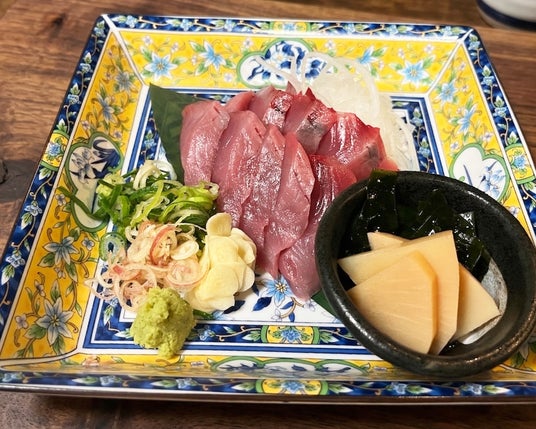 愛媛・愛南町深浦港から届く鮮度抜群の「日帰りカツオ」(季節限定)、高知・宿毛湾で育てられた「荒木さん家のブリ」、自然にも人にも優しい「真鯛未来」、そして爽やかな香りが特徴の幻の柑橘「直七(なおしち)」など、生産者の想いが詰まった食材を厳選して使用しています。