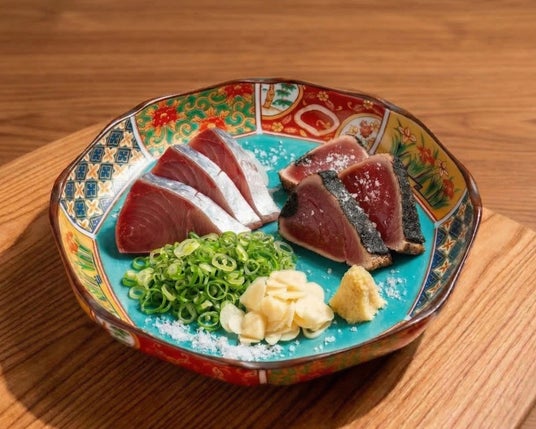 旬を迎える初鰹は、脂が控えめで爽やか、もちっとした食感と上品な旨みが魅力。素材の持ち味をまっすぐ味わえる刺身と、表面を香ばしく炙ることで風味と旨みを際立たせたタタキを一度にお楽しみいただけます。