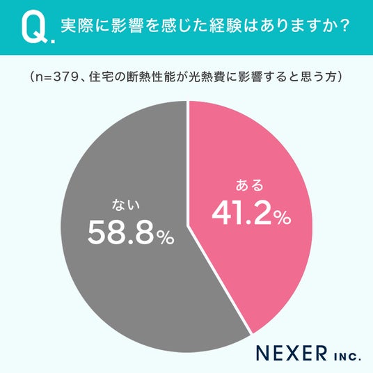 また、住宅の断熱性能が光熱費に影響すると思う方に、実際に影響を感じた経験はあるか聞いてみました。