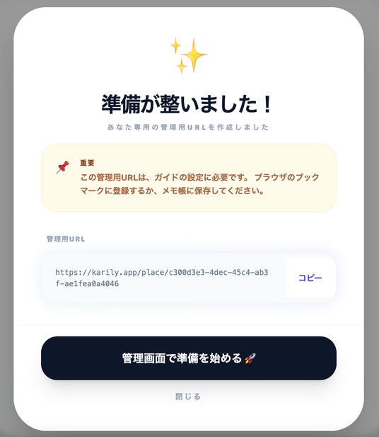 場所用のURLを発行